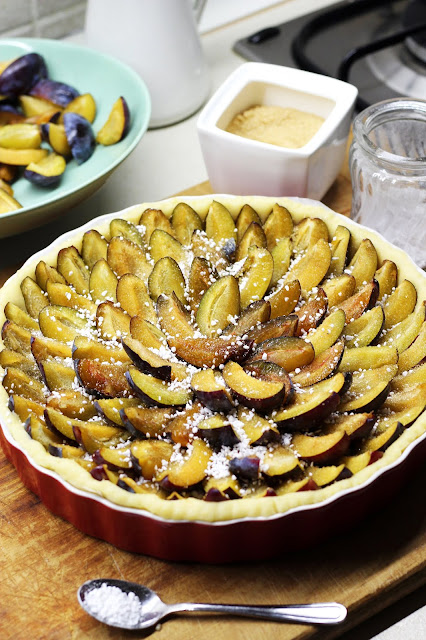 U ovom periodu godine ima mnogo lepog svežeg voća i šteta je ne napraviti bar jednu pitu sa njim. Moj najčešći izbor su šljive, koje obožavam i sveže i u kolačima. Ova prhka pita je i ukusna a i dekorativna, zbog interesantnog načina na koji se šljive slažu, u krug.